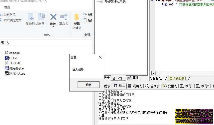 易语言创建进程之自动注入DLL模块分享和相关调用Demp例程源码分享