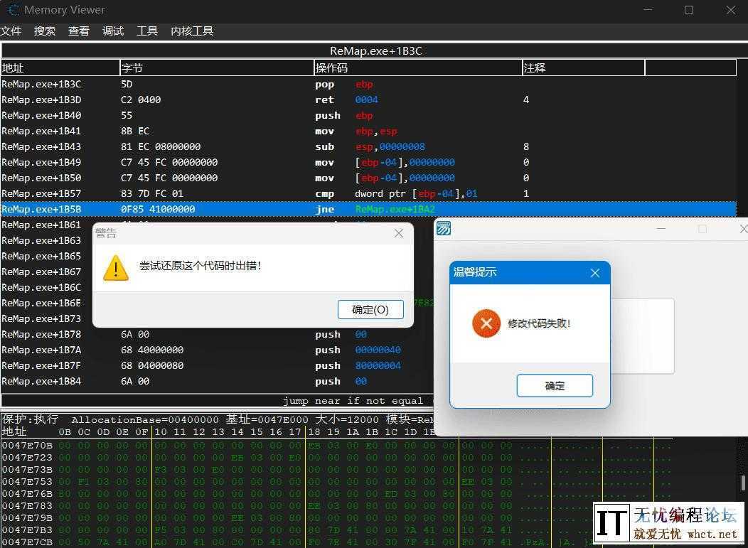易语言防破解:R3保护自己的代码段不被修改,直接废掉WriteMemory 纯源码 会用的自己下载 测试: [*]利用NtCreateSection创建一块和欲保护的地址大小相同的Section,然后将数据拷贝到改Section中,最后用NtMapView ...
