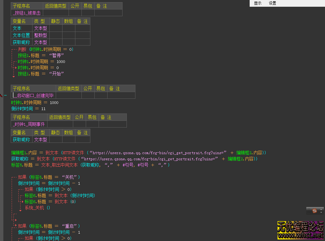 1.昵称修改为关机,系统倒计时10秒自动关机 2.关机、重启、注销、待机、隐藏、呼出 3.专为躲在被窝的憨憨们设计 原理很简单,利用的是取你的QQ空间获取昵称,来通过操作,内附源码和成品。 本地下载:(https: ...