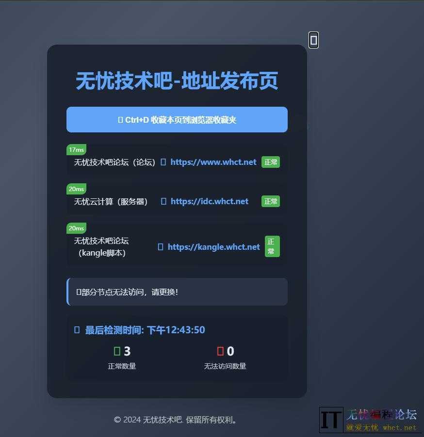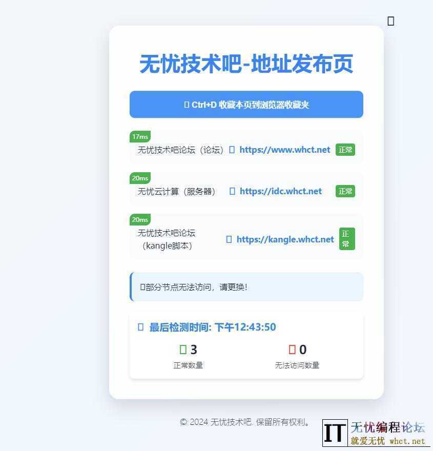 bg4.png全新UI网址发布页源码_地址发布单页_带黑白模式简介:全新UI网址发布页源码_地址发布单页_带黑白模式自动检测是否能够正常访问,自动黑夜/白天模式,也可手动切换,主要是页面好看。 图片: https://whct.lan ...