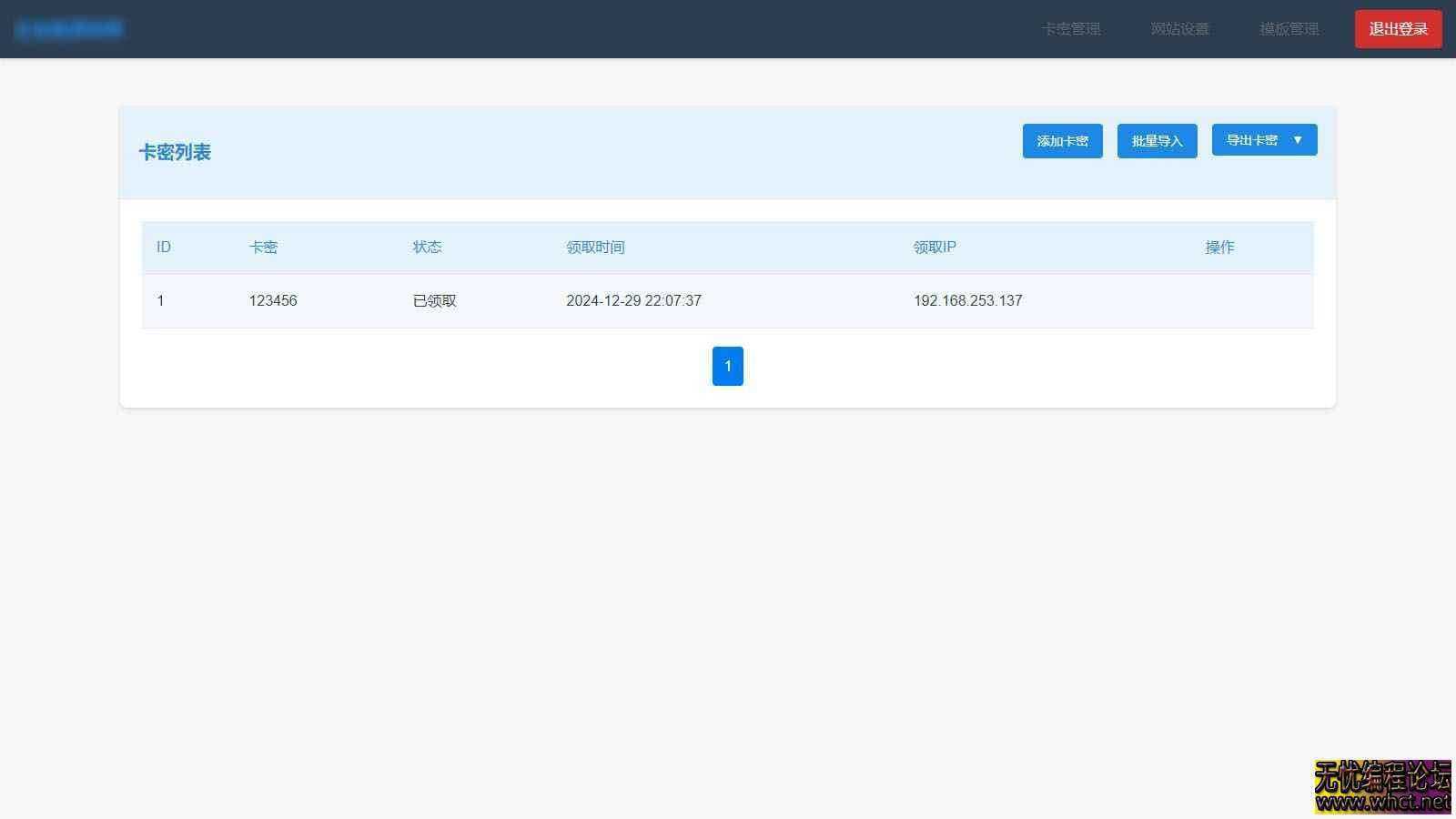 程序介绍: 这是一个简单易用的卡密验证系统,主要功能包括: 卡密管理和验证,多模板支持,响应式设计,验证码保护,防刷机制,简洁的用户界面, 支持自定义模板,移动端优化,安全性保护,易于部署和维护。 # 系统 ...