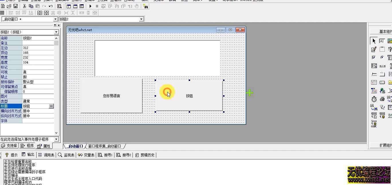 易语言第一课时【1】熟悉常用 编辑框,按钮,编写基础小程序 [您好,无忧论坛]