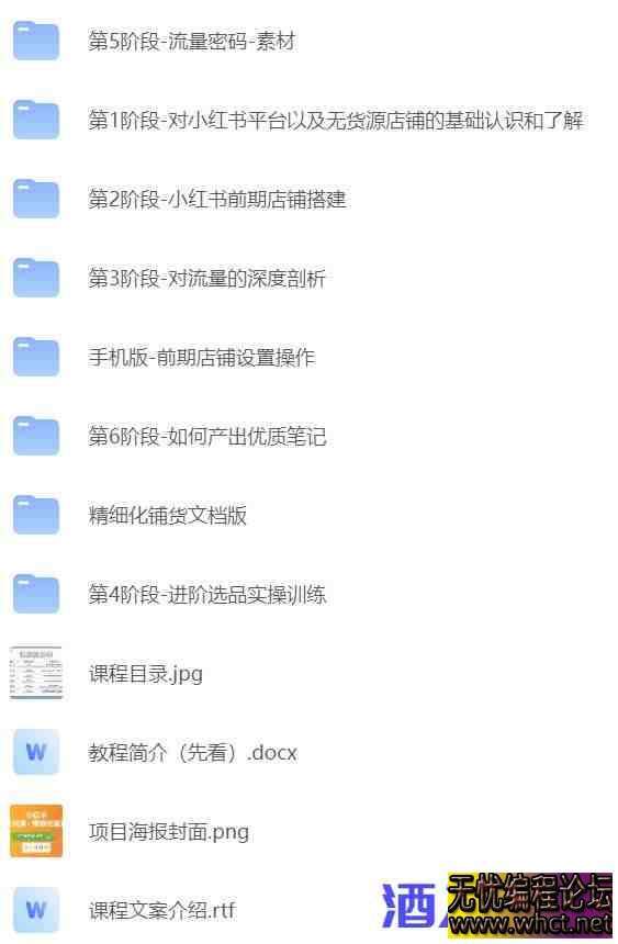 课程介绍 2024小红书电商风口正盛,精心打造全网优质课程、适合小白从0-1(无货源)精细化铺货实战,早进早吃肉! 课程分为6个阶段,按顺序认真学习,必拿正反馈结果。 课程有视频和文档,以视频为主,文档为辅助 ...