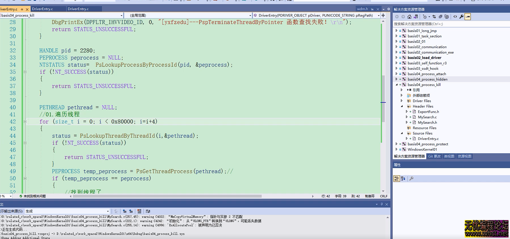 第九课 驱动功能封装与三环交互开发 一、驱动文件集成到三环项目 1. 准备驱动资源 [*]将编译好的 .sys 驱动文件复制到用户程序目录(建议新建 Drivers 子目录) [*]包含驱动定义头文件(如 MyDriver.h),内容示 ...