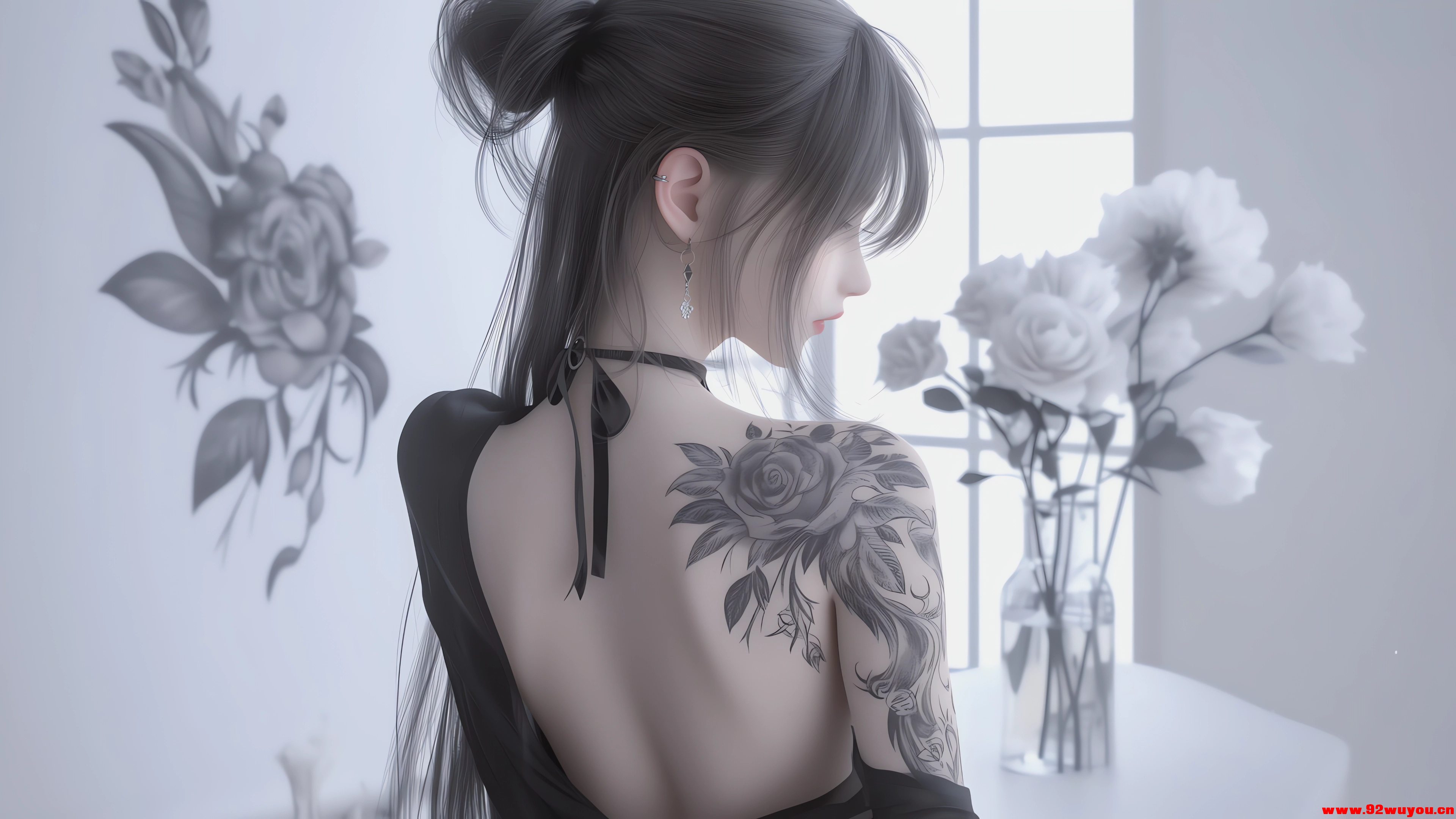 纹身后背女孩 高清4K壁纸 二次元动漫 带鱼屏壁纸